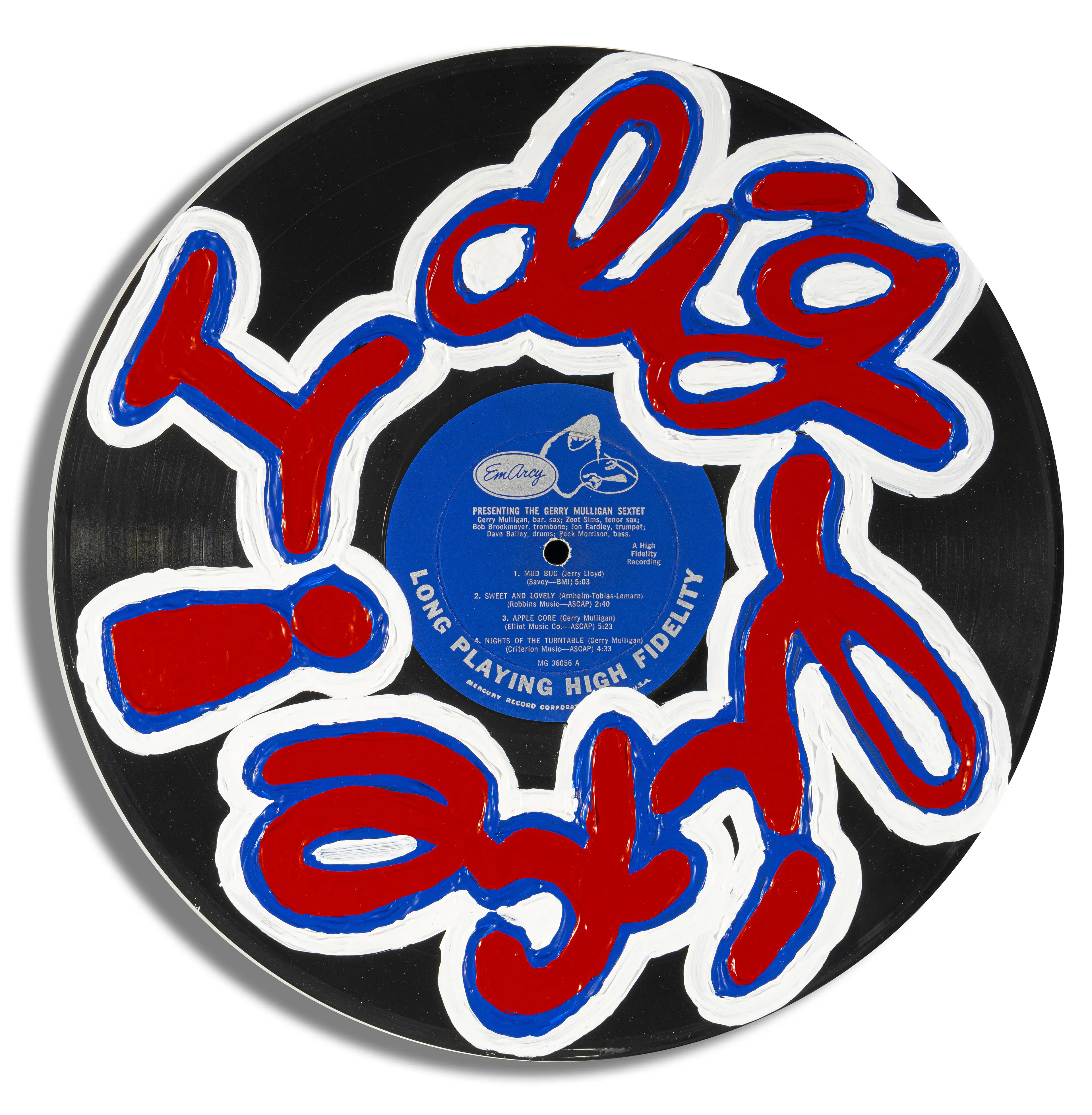 Using mid-century road maps and jazz records from 1947 to 1957, the era of Kerouac’s own journey, she reconstructs a visual geography of the novel. Each state is paired with distilled quotations, forming a fragmented, lyrical itinerary. Her red, white, and blue palette evokes both national iconography and ideological tension, while gestural layers of paint mimic the improvisational rhythm of bebop and the stream-of-consciousness prose that defined the Beat Generation. The resulting compositions function as weathered billboards, monuments to a dream in flux.